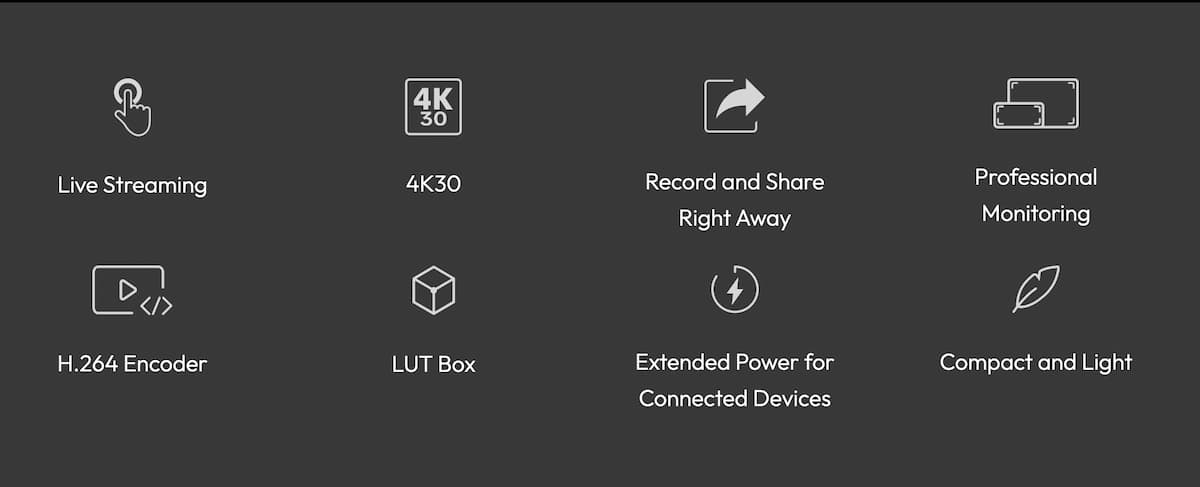 · รองรับกล้อง DSLR / Mirrorless / กล้องวิดีโอใด ๆ ที่มีพอร์ต HDMI Type-A (Full Size)