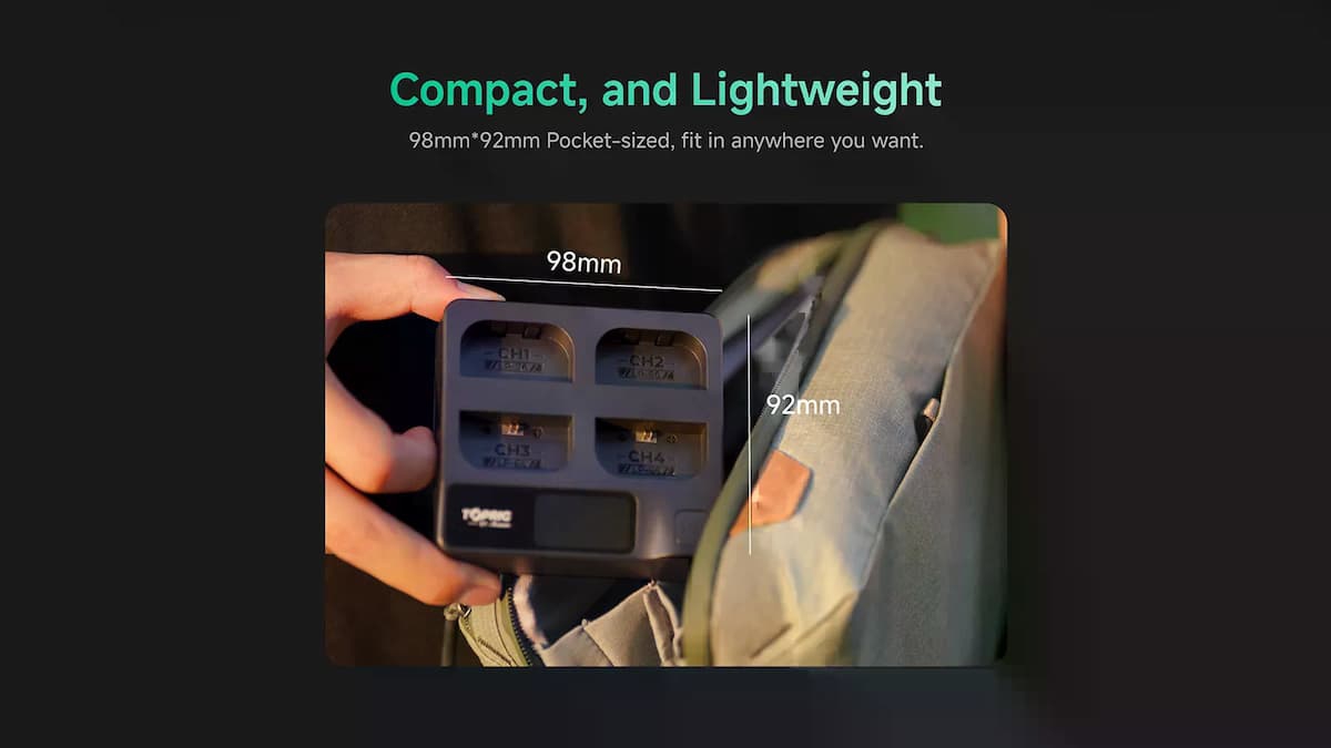 · ตัวเครื่องผลิตจาก อะลูมิเนียม CNC + พลาสติก ABS ทนร้อน, ขนาดเล็กใส่กระเป๋ากล้องได้ง่าย