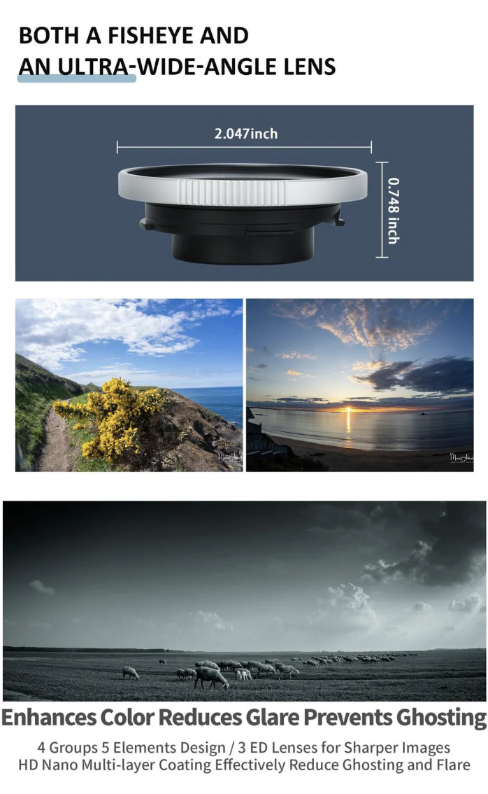 · มุมมอง Fisheye 180° เต็มตา: มอบมุมมองที่ กว้างถึง 180 องศา สร้างเอฟเฟกต์ภาพโค้งมนและบิดเบือนที่ไม่เหมือนใคร เพิ่มความสร้างสรรค์และพลังทางภาพให้กับงานสตรีท ทิวทัศน์ หรือภาพบุคคล