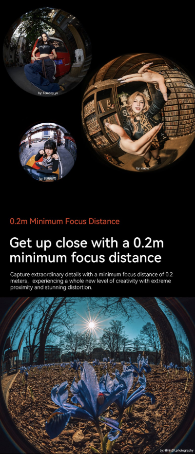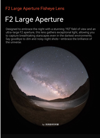 · รูรับแสง F2.0 สว่างมาก: เป็นเลนส์ Fisheye ที่มีรูรับแสงกว้างพิเศษถึง f/2.0 ทำให้ เก็บแสงได้ดีเยี่ยม เหมาะกับการถ่ายภาพในที่แสงน้อย เช่น การถ่ายดาว (Astrophotography) และภาพกลางคืน