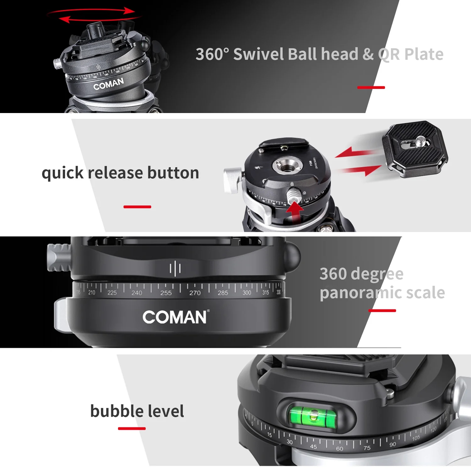 Coman Zero F38 Professional Travel Carbon Fiber Tripod with Arca Ball Head & DJI Quick Release ประกันศูนย์ไทย
