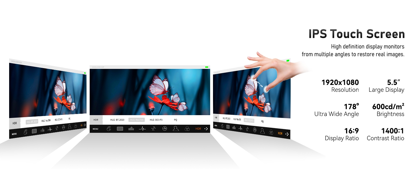 ・จอมอนิเตอร์ขนาด 5.5 นิ้ว Full HD 1920 x 1080 IPS สีสวย คมชัด