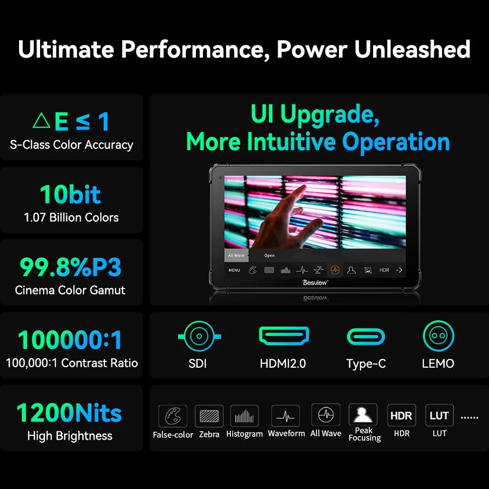 ・ฟีเจอร์ช่วยภาพขั้นสูง เช่น waveform, vectorscope, false color, focus peaking, histogram, zebra, HDR preview ฯลฯ