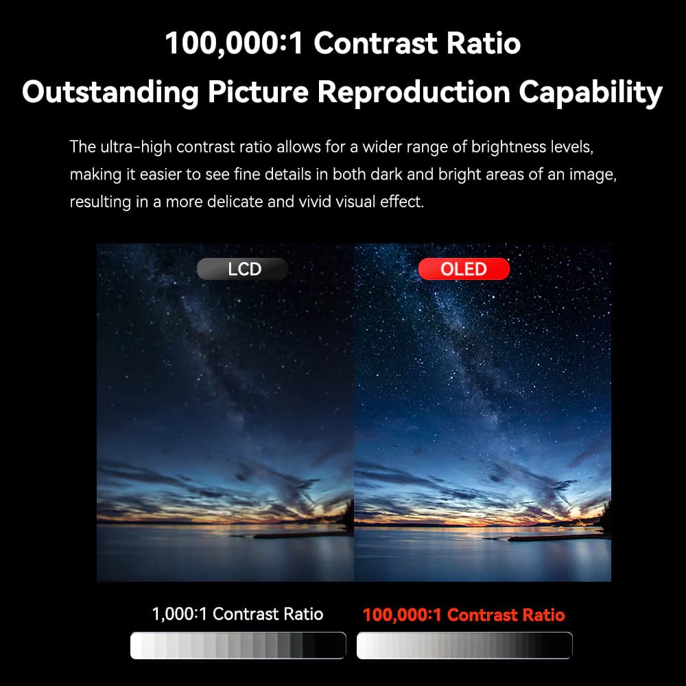 ・ความเปรียบต่างสูงสุด 100,000:1 ให้สีดำลึก และรายละเอียดสีที่สมจริง