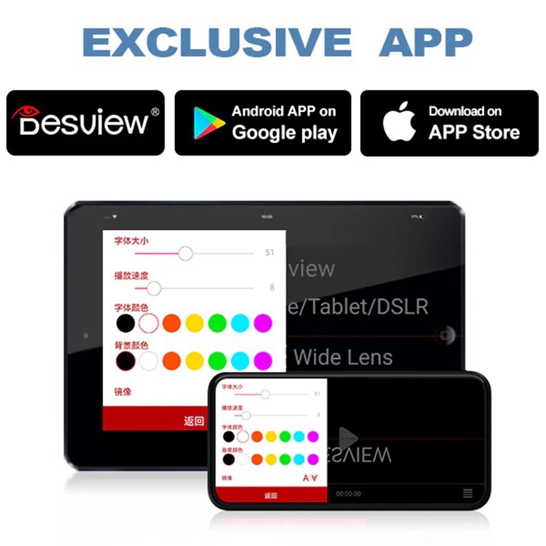 ・จอแสดงผลแบบกระจกขนาด 12.5 นิ้ว คุณภาพสูง รองรับโทรศัพท์มือถือและแท็บเล็ตสำหรับใช้เป็น Script Reader ที่ขนาดนหน้าจอได้สูงสุด 11 นิ้ว