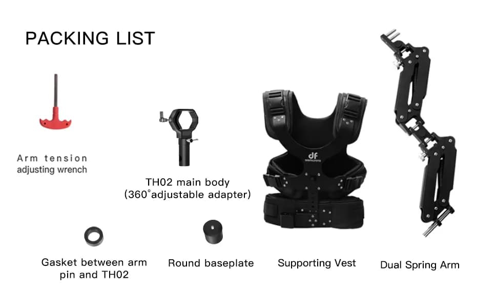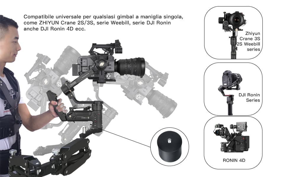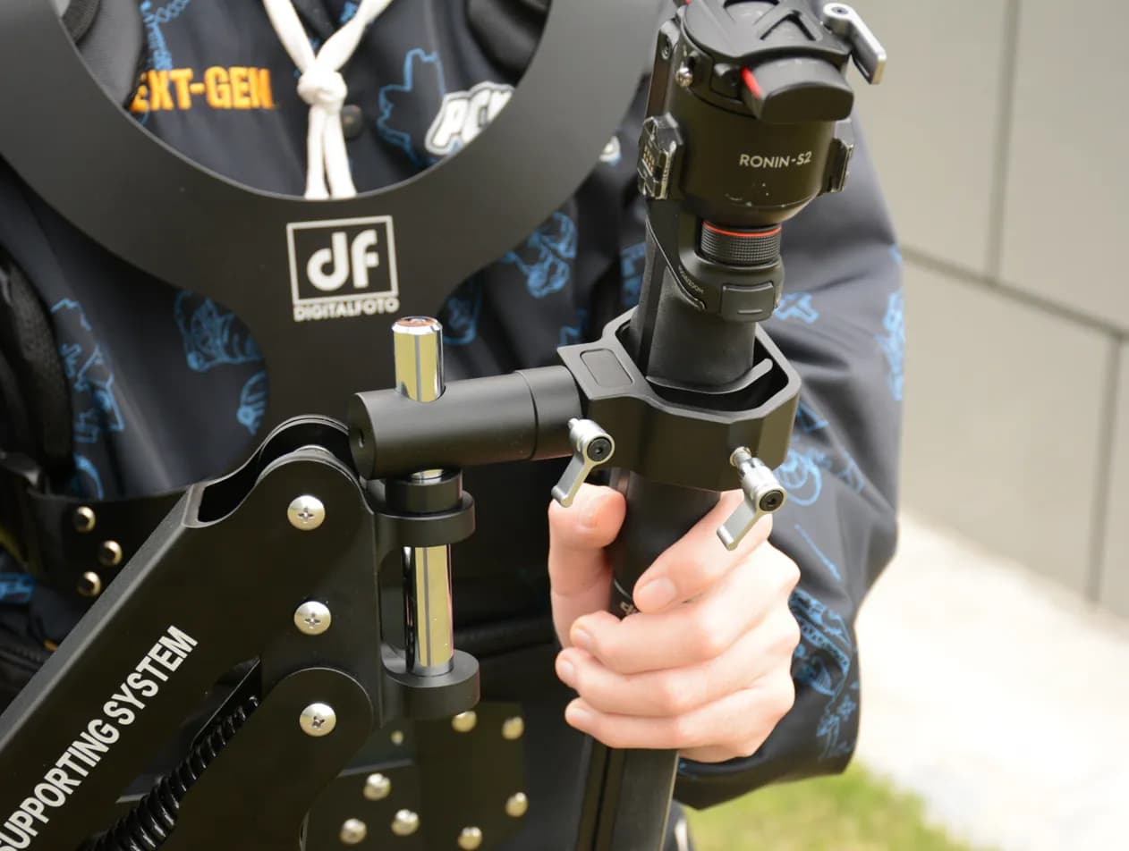 ・รองรับน้ำหนักกล้อง/กิมบอล 5–12.5 kg (11–27.5 lbs) เหนือระดับด้วยการกระจายแรงสู่เอวและหลัง