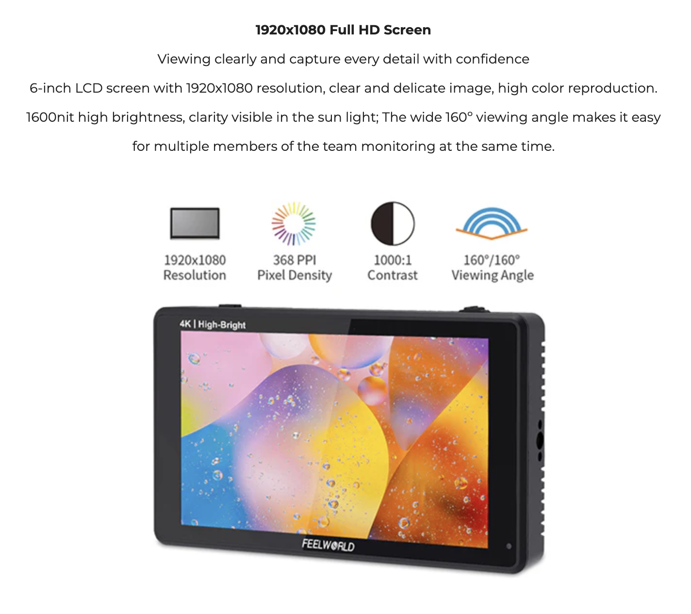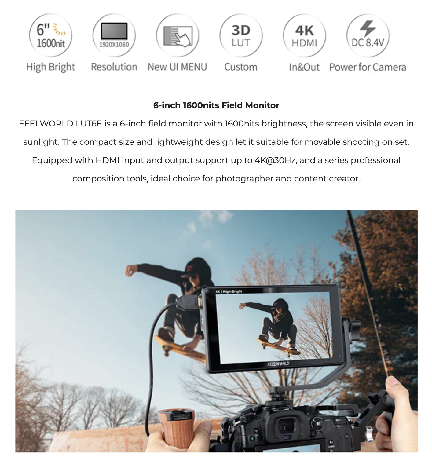 FEELWORLD LUT6E 6 Inch 1600nit High Bright Touchscreen DSLR Camera Field Monitor ประกันศูนย์ไทย