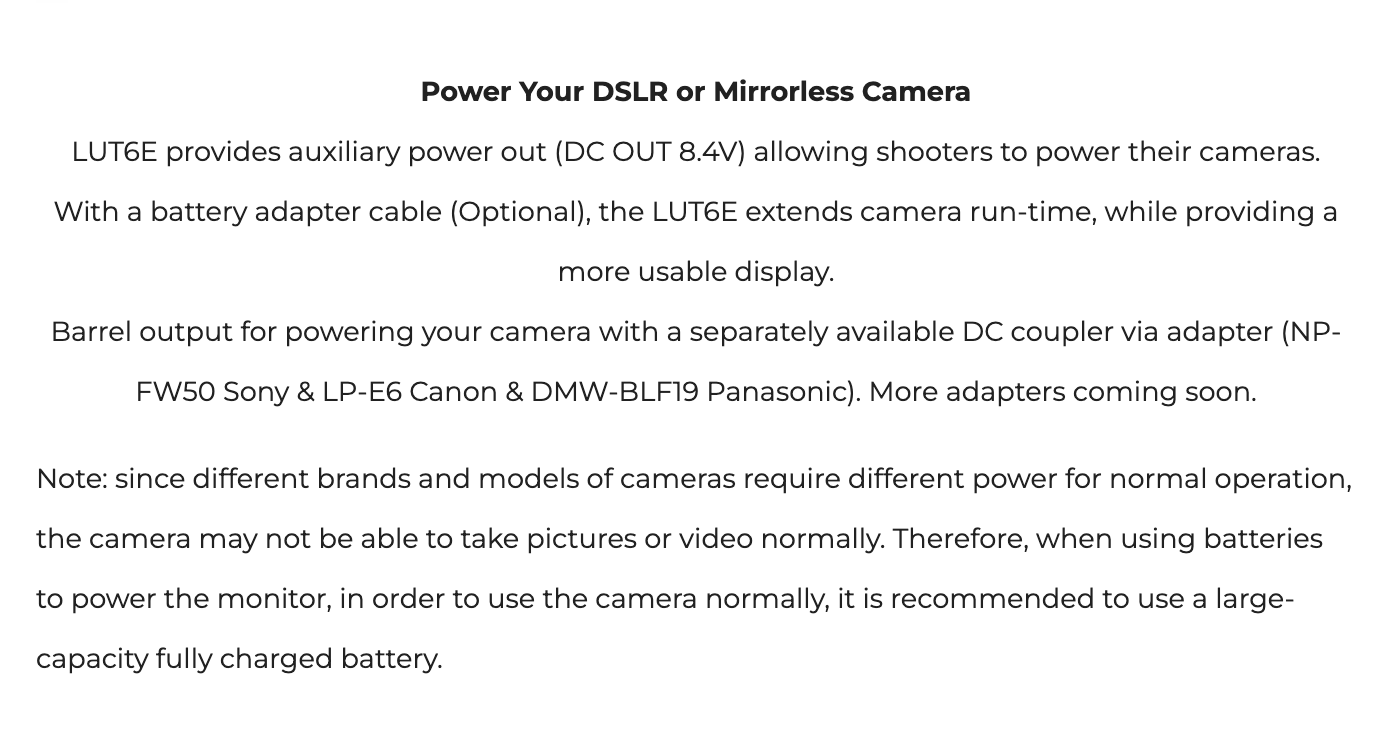 ・มี DC OUT 8.4V สำหรับจ่ายไฟให้กล้อง (ผ่าน dummy battery)