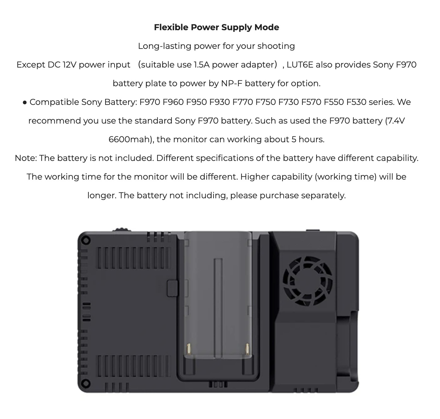 ・มาพร้อมเพลทแบตเตอรี่ NP-F รองรับการใช้งานยาวนาน