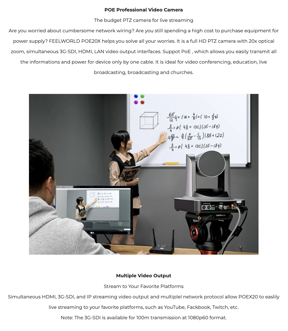 FEELWORLD POE20X พร้อมกัน 3G-SDI HDMI IP สตรีมมิ่ง PTZ กล้องพร้อมรองรับ 20X Zoom PoE ประกันศูนย์ไทย