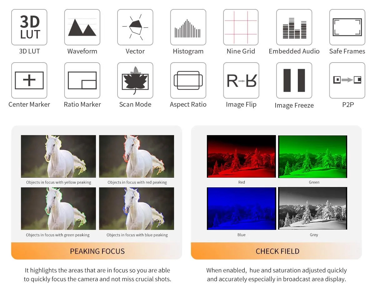 ・รองรับ 3D LUT สามารถโหลด LUTs แบบกำหนดเองผ่าน SD card และรองรับการแสดงผล HDR เพื่อการตรวจสอบภาพที่แม่นยำ