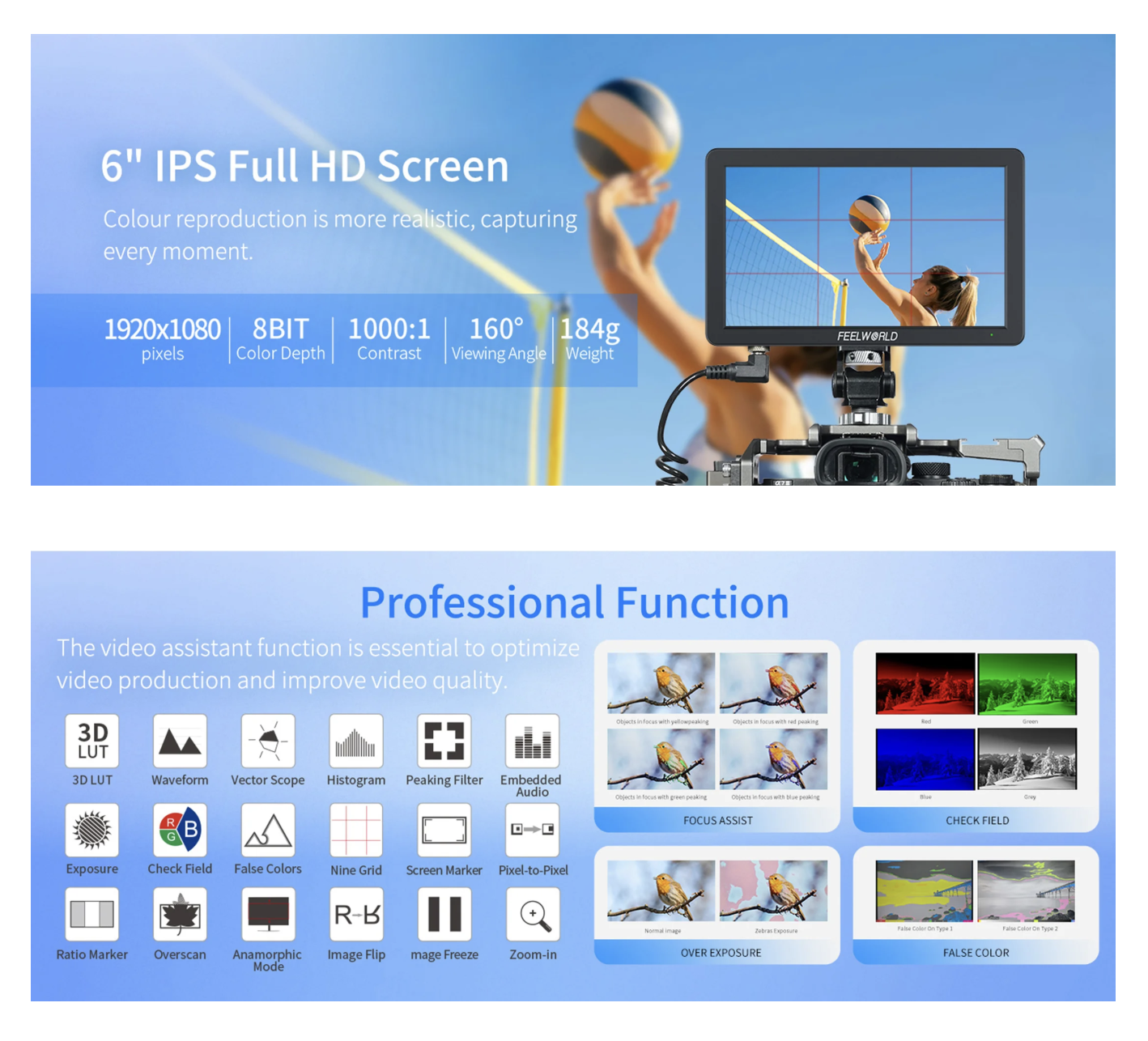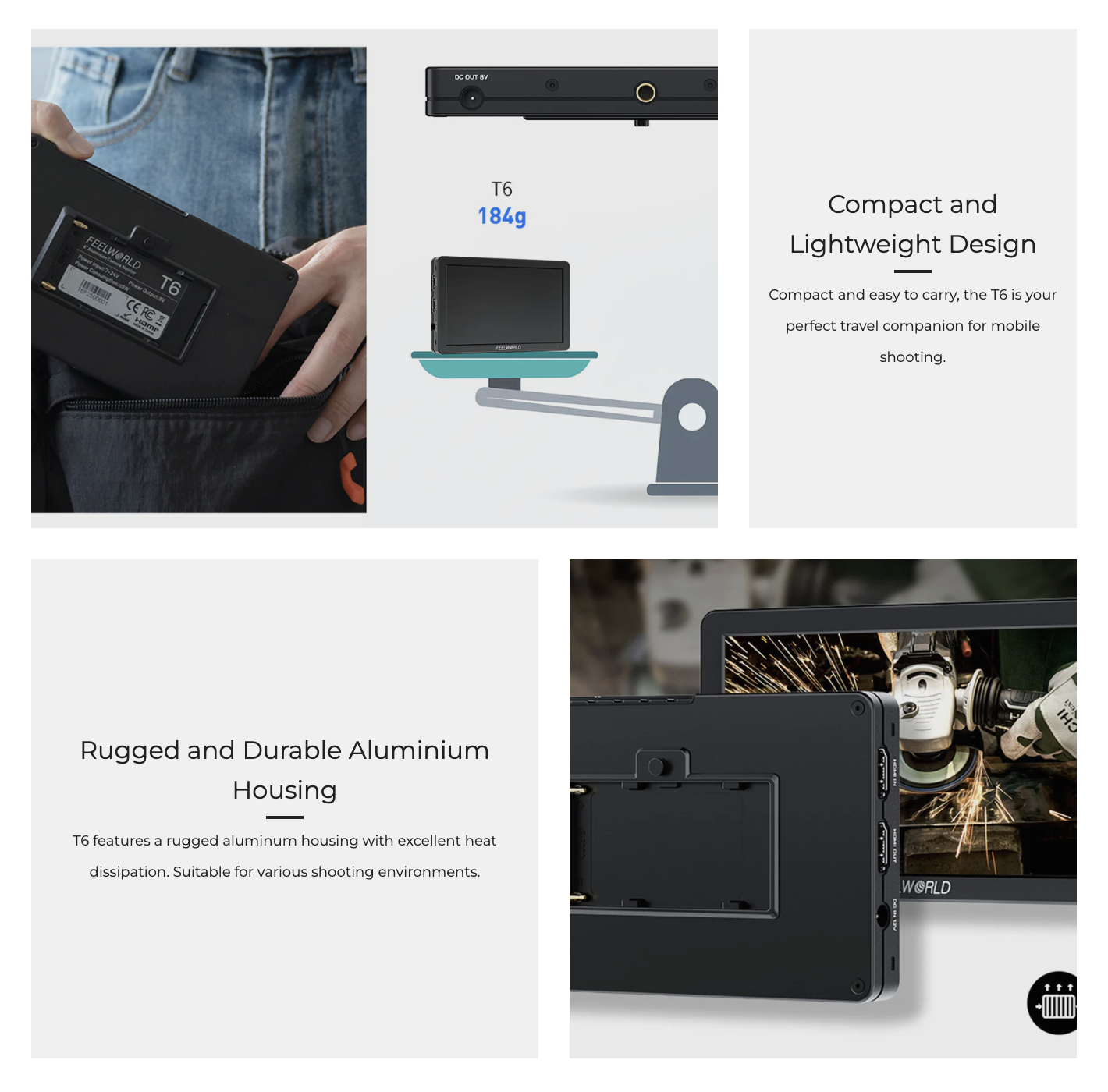 คุณกำลังรีวิว: FEELWORLD T6 6" 450nit Camera Field Video Monitor Aluminium Housing 4K HDMI 1920x1080 IPS ประกันศูนย์ไทย