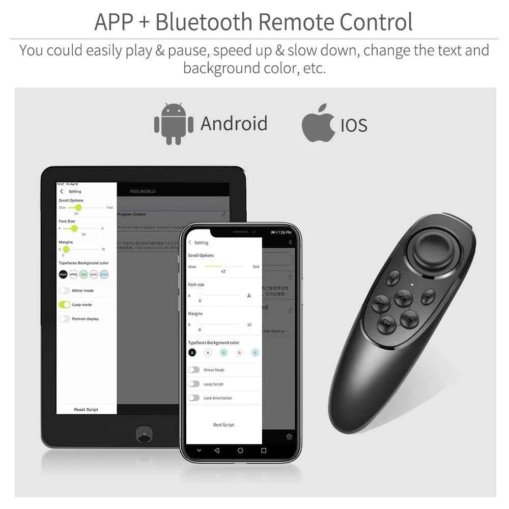 ・ควบคุมการแสดงผลได้ง่ายด้วยรีโมตบลูทูธ เชื่อมต่อกับแอป Teleprompter บนมือถือหรือแท็บเล็ต ควบคุมการเลื่อนสคริปต์ได้อย่างอิสระ