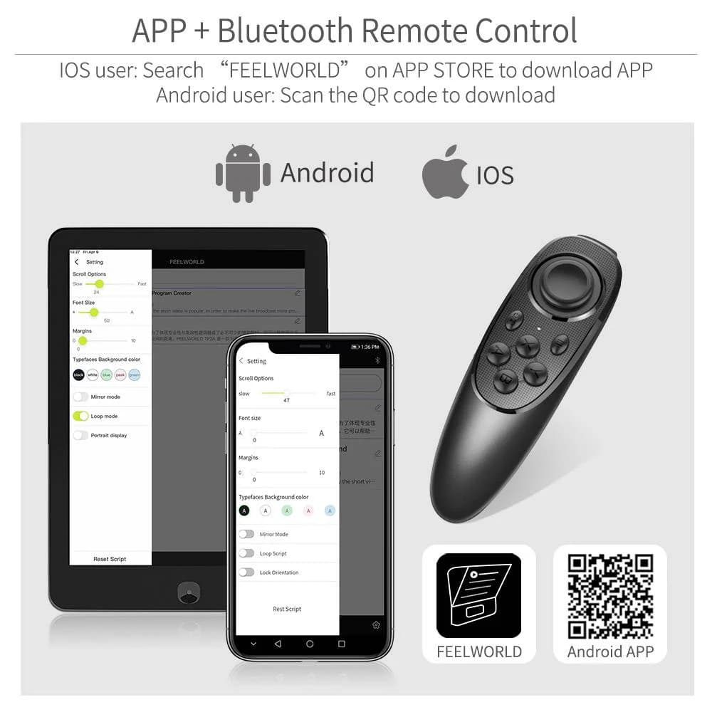 ・ควบคุมการแสดงผลได้ง่ายด้วยรีโมตบลูทูธ เชื่อมต่อกับแอป Teleprompter บนมือถือหรือแท็บเล็ต ควบคุมการเลื่อนสคริปต์ได้อย่างอิสระ