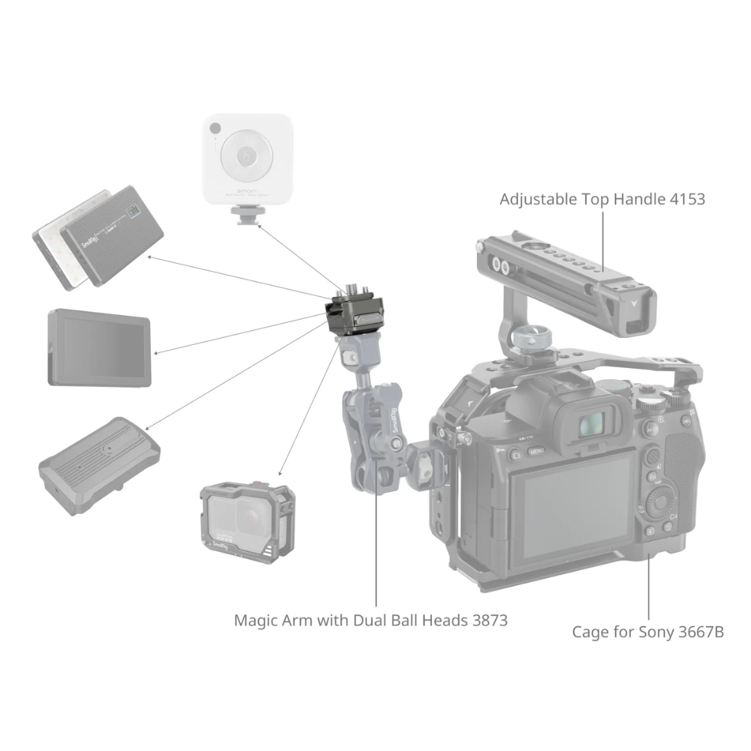 ・ออกแบบให้ใช้งานร่วมกับอุปกรณ์เสริมอื่น ๆ: สามารถใช้งานร่วมกับอุปกรณ์เสริมของ SmallRig เช่น Magic Arm, Mini Tripod และอื่น ๆ