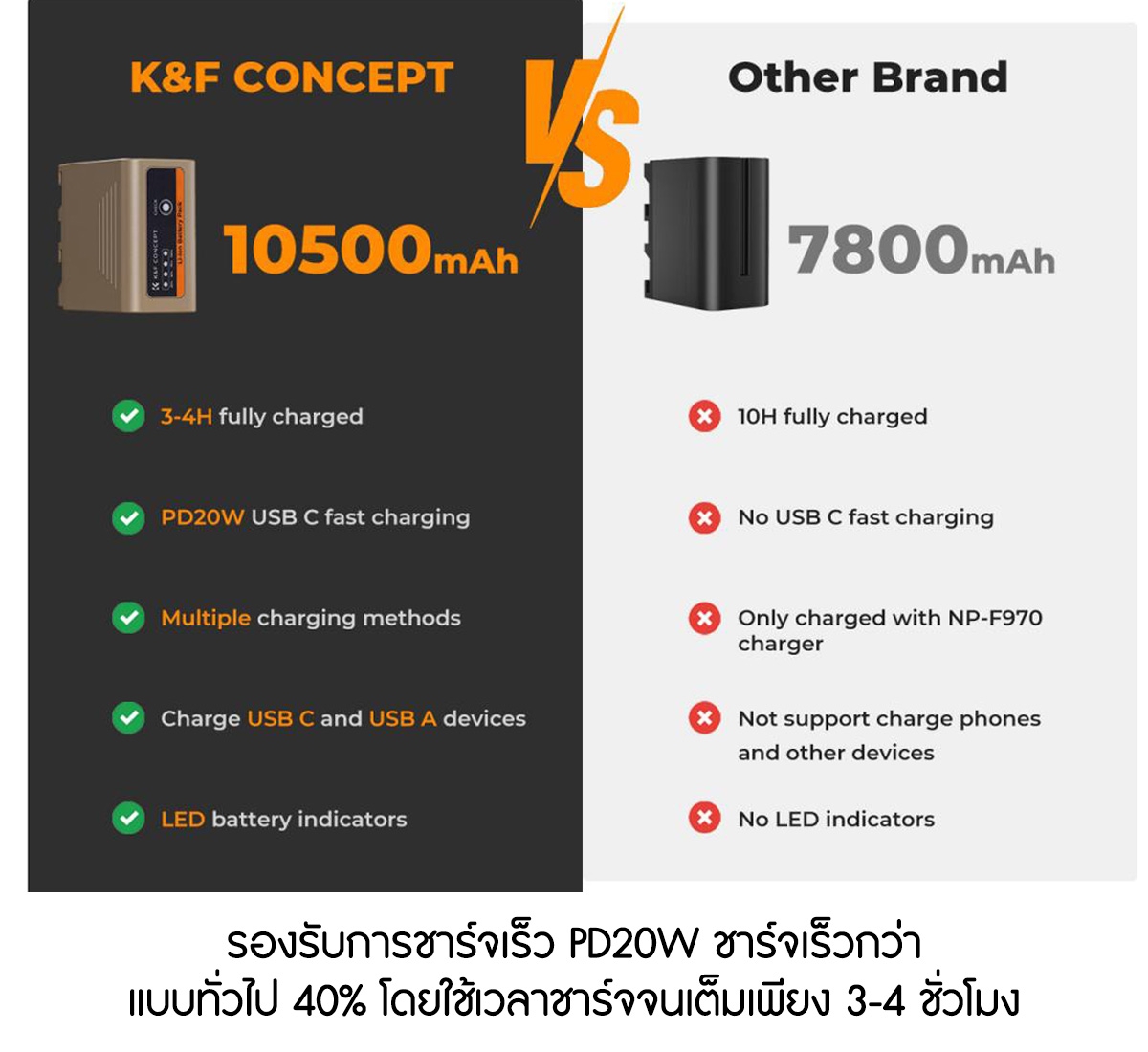 K&F (KF28.0036) NP-F970 10500mAh Type C Two-Way Rechargeable Battery ประกันศูนย์ไทย 2 ปี