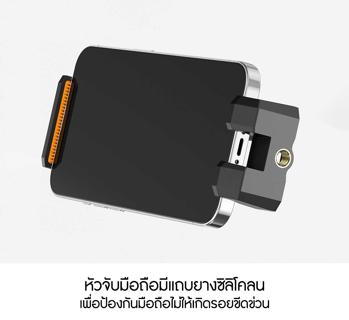 ・หัวจับมือถือมีแถบยางซิลิโคลน เพื่อป้องกันมือถือไม่ให้เกิดรอยขีดข่วน