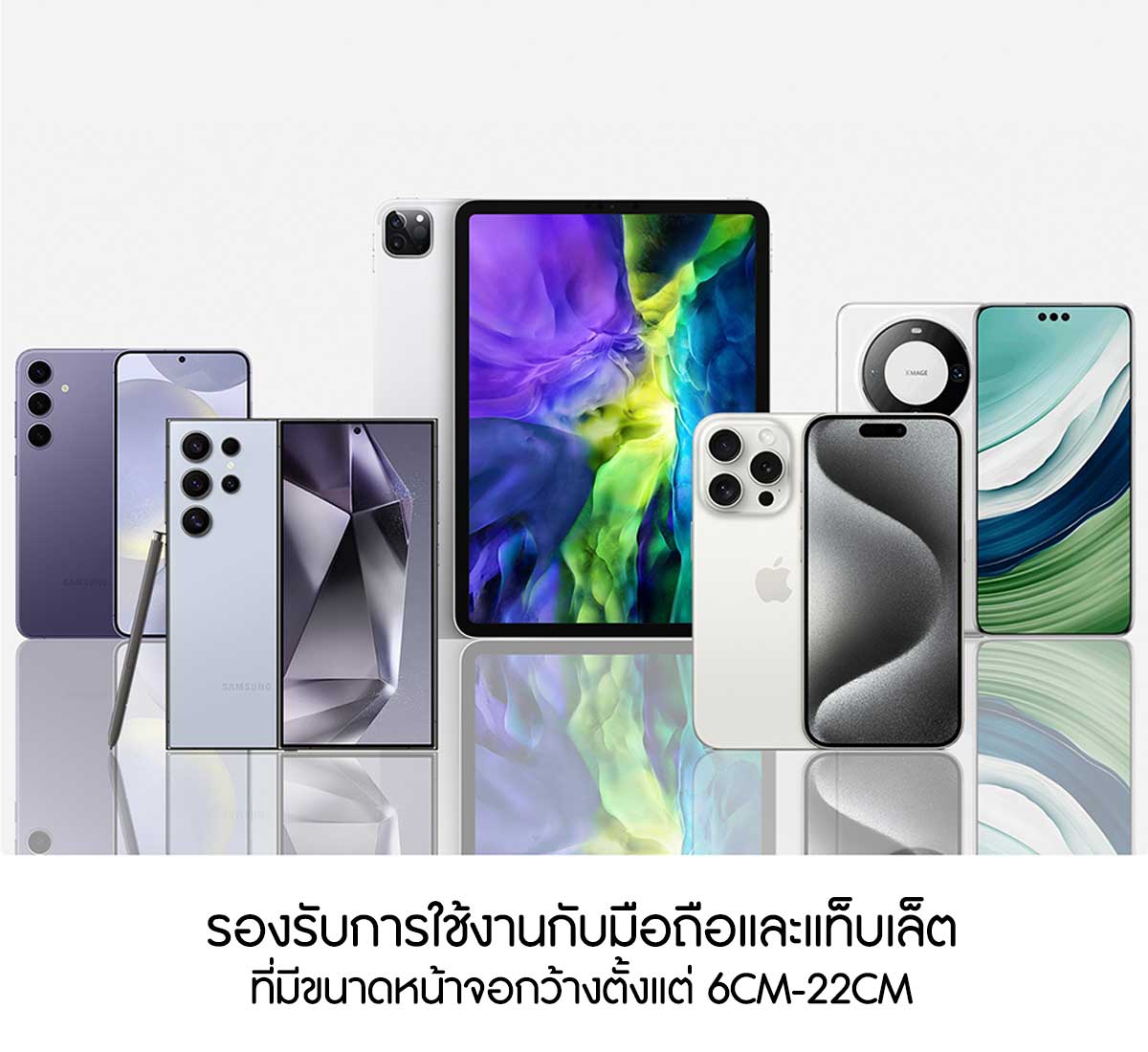 ・รองรับการใช้งานกับมือถือและแท็บเล็ตที่มีขนาดหน้าจอกว้างตั้งแต่ 6CM-22CM