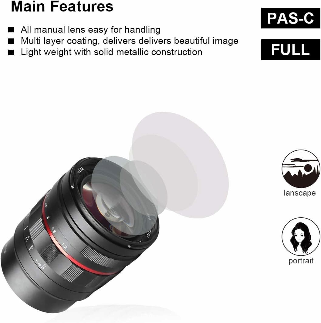 · In the box : MEKE 50mm f/1.2 Lens x1, Lens Cap(front and rear) x2, Lens Cleaning Cloth x1, Manual and Warranty Card x1, Lens Hood x1