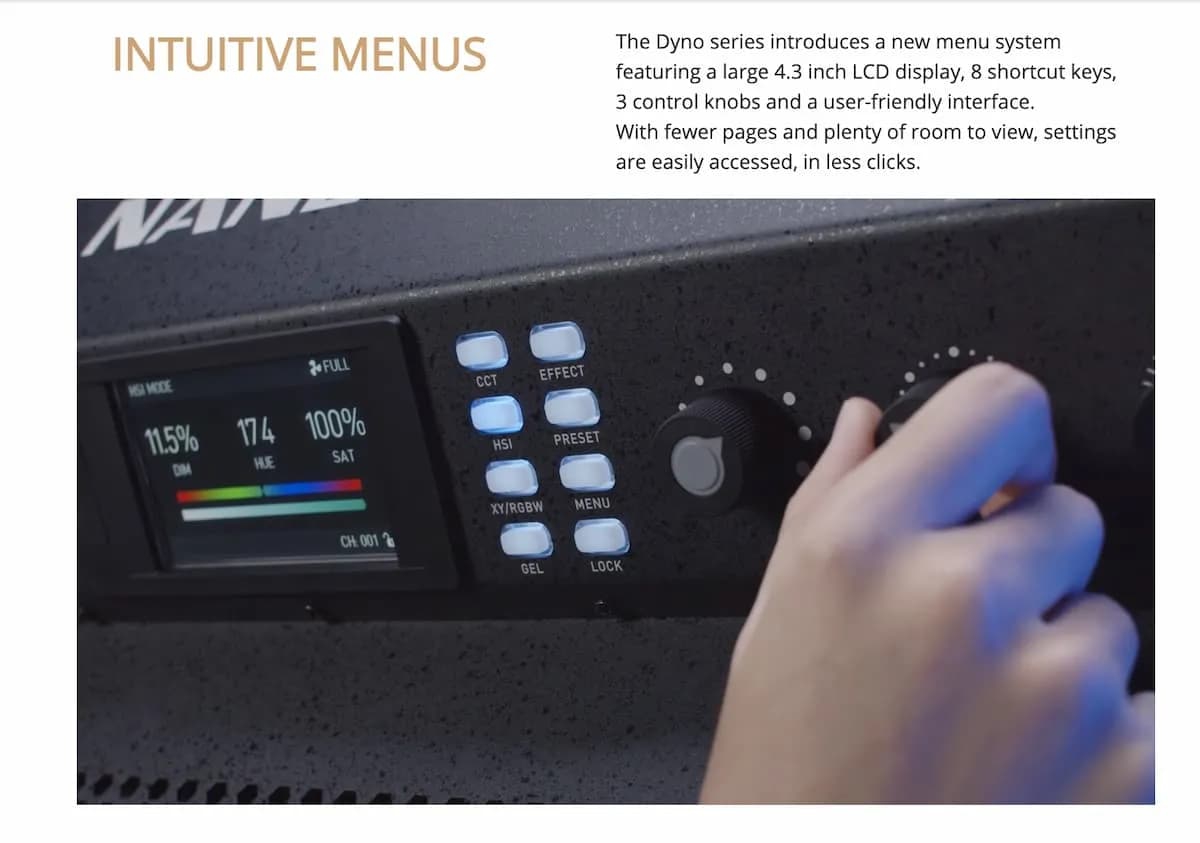 ・In the Box : Nanlux Dyno 1200C RGBW LED Panel, Power Adapter, Connecting Cable, Power Cable, Standard Diffuser, Light Stand Clamp, USB Flash Drive