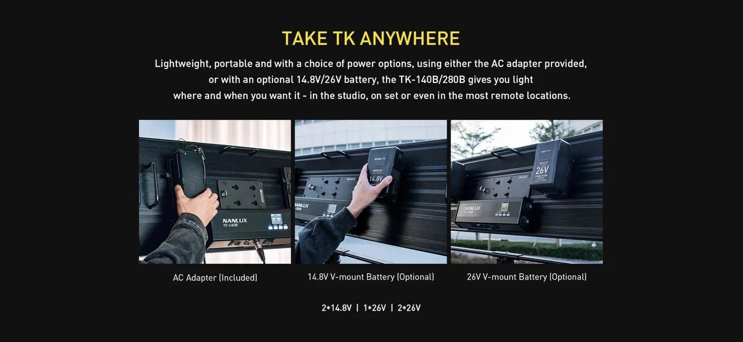 ・ใช้พลังงานไฟ AC 100-240V หรือสามารถใช้งานร่วมกับแบตเตอรี่ V-Mount ได้ (อุปกรณ์เสริม)
