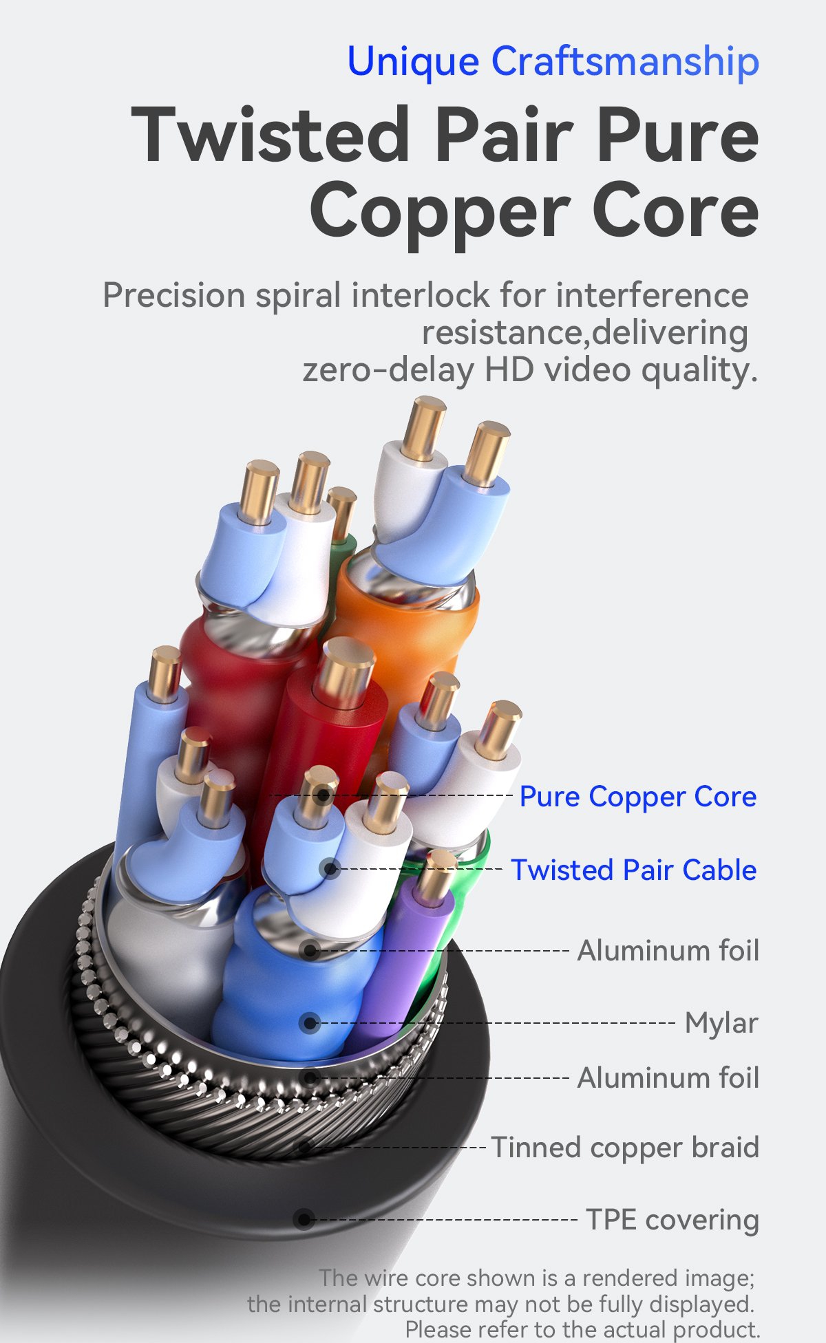 ・เส้นผ่าศูนย์กลางเล็ก 3.6 มม. ตัวสายทวิสต์คู่ (twisted pair) พร้อมแกนทองแดงบริสุทธิ์ ให้ความยืดหยุ่นสูง เหมาะกับการใช้งานพื้นที่แคบและติดกล้อง