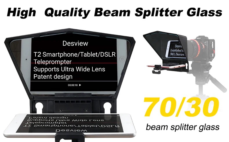 Desview T2 Portable Teleprompter 7.9” Smartphone and DSLR camera for 8” smartphone, tablet Prompting ประกันศูนย์ไทย