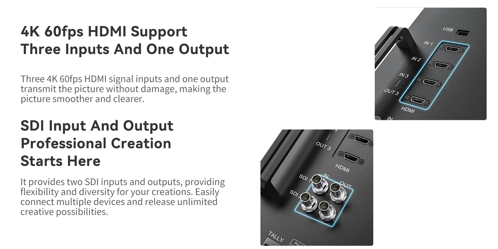 ・การเชื่อมต่อวิดีโอ รองรับ 4K60p เชื่อมต่อผ่าน HDMI 2.0 และ 3G-SDI