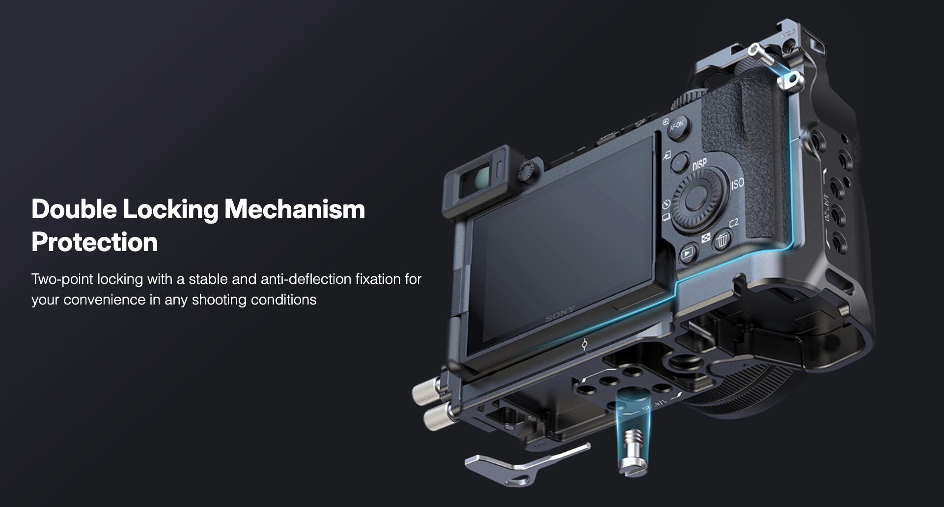 ・ยึดกล้องแน่นด้วยสกรู 2 จุด และมีแผ่นรองกันลื่น ไม่ให้กล้องหมุนใน cage