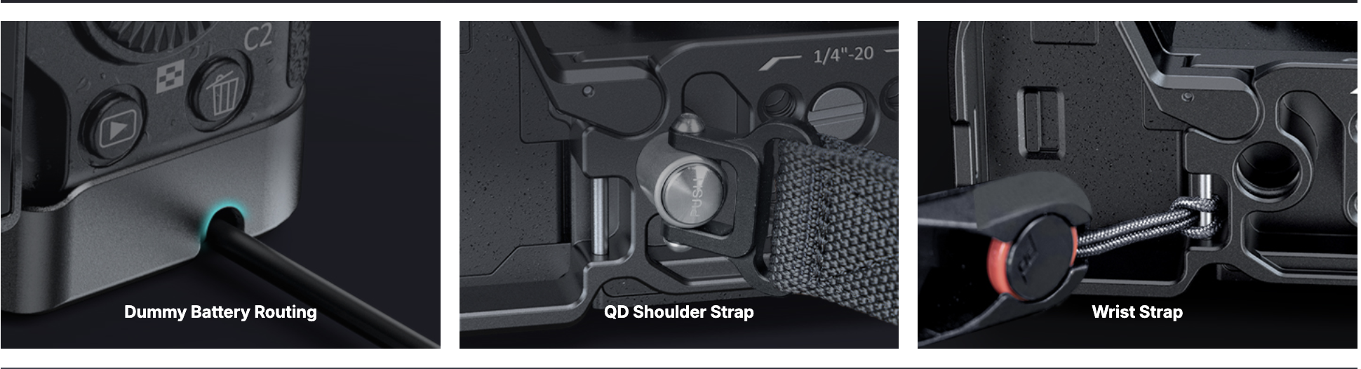 ・ด้านล่าง cage ออกแบบเว้าให้วางนิ้วก้อยได้พอดี ทำให้จับกล้องสบายขึ้น