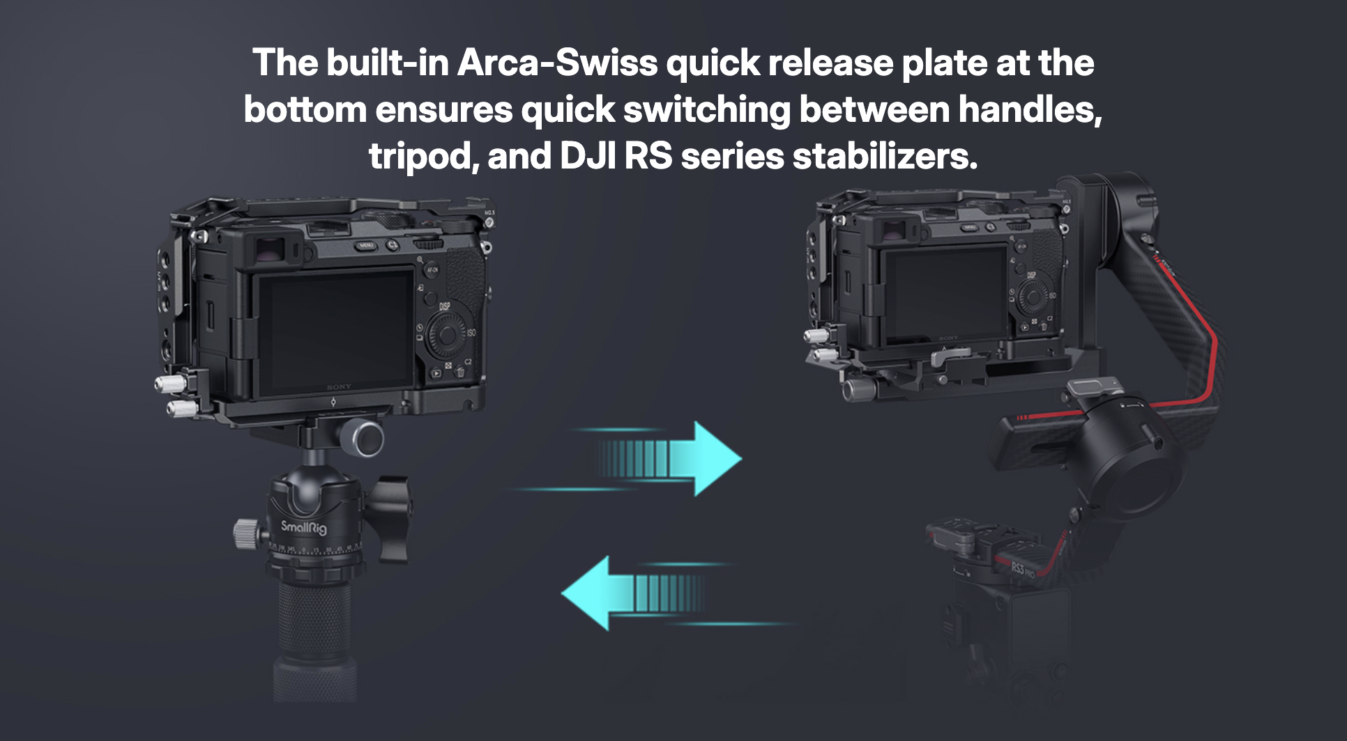 ・ใช้ได้กับขาตั้งกล้องหรือกิมบอลที่รองรับ Arca-Swiss เช่น DJI RS2, RS3