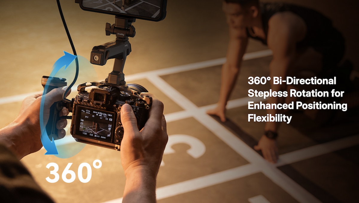 ・หมุนได้ 360° ปรับตำแหน่งการจับถือได้อิสระ ใช้ได้ทั้งมือซ้ายและขวา รองรับการถ่ายหลายรูปแบบ