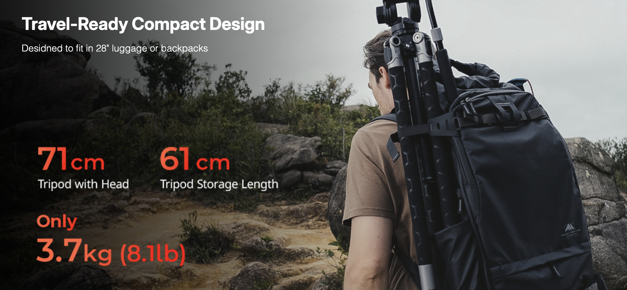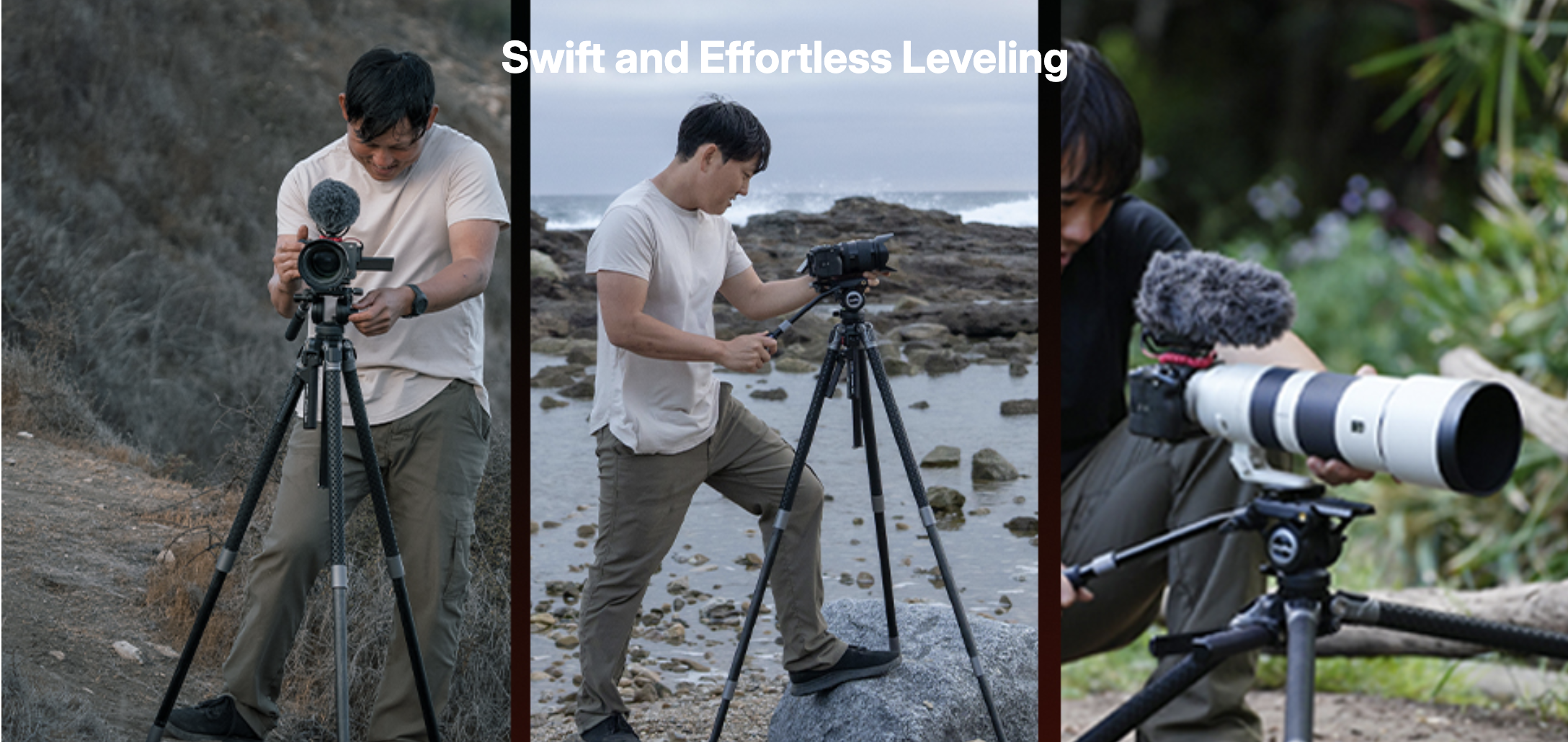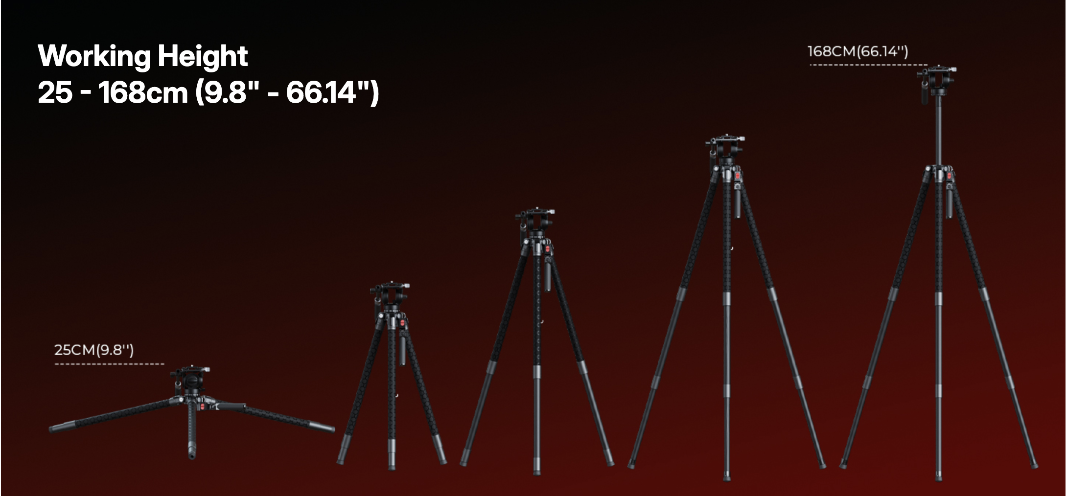 ・ขา Tripod คาร์บอนไฟเบอร์ เเข็งแรงแกร่งแต่เบา ขาตัวเองหนักแค่ประมาณ 3.8 กก. (8.2 ปอนด์) แต่รับน้ำหนักได้สูงสุดถึง 25 กก. เมื่อไม่ติดหัวกล้อง