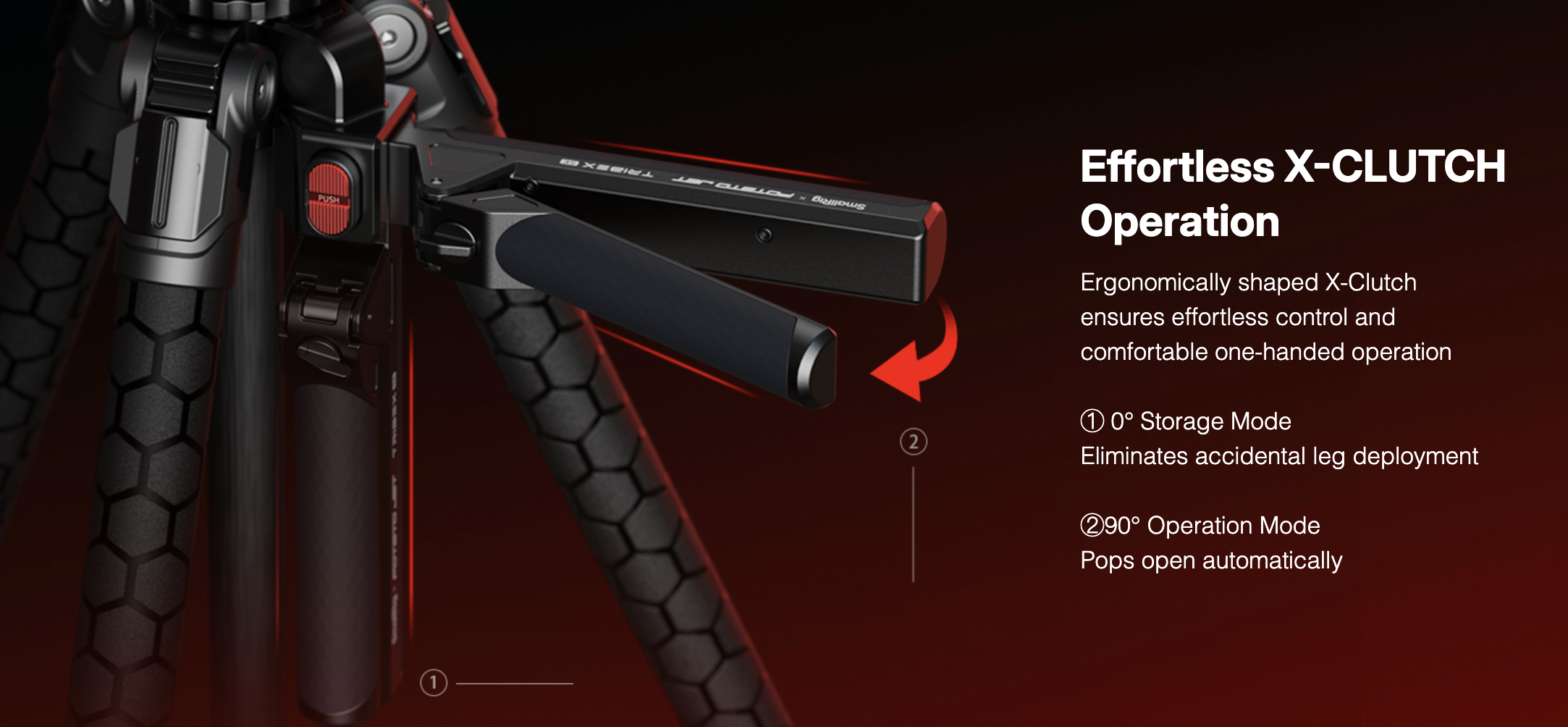 ・ระบบ X‑Clutch Hydraulic ใช้คลัตช์เดียวควบคุมการกางขาทั้งสามอย่างรวดเร็วภายใน 1 วินาที ให้ตั้งระดับได้ง่ายแม้บนพื้นขรุขระ