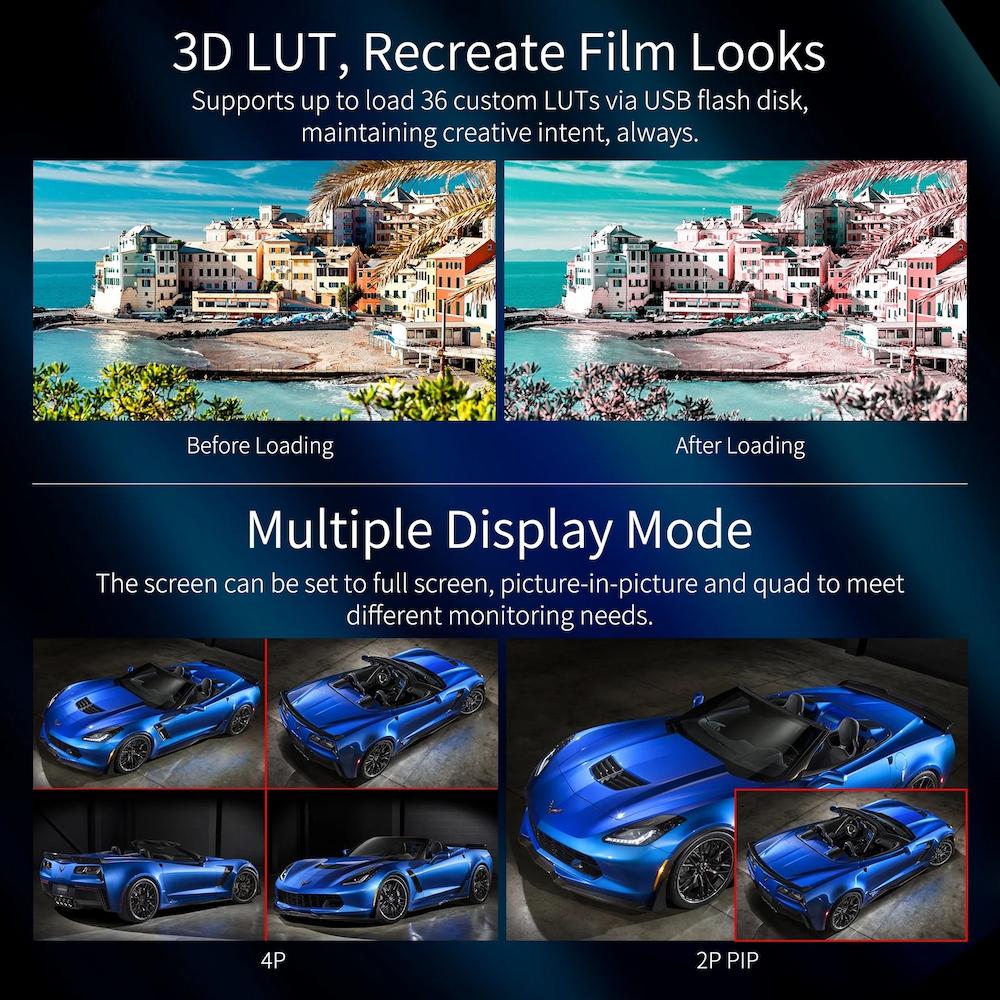 ・รองรับการแสดงผลแบบ Quad View, Dual View และ Single View (การแสดงผลพร้อมกัน 4, 2 หรือ 1 ช่องสัญญาณ)