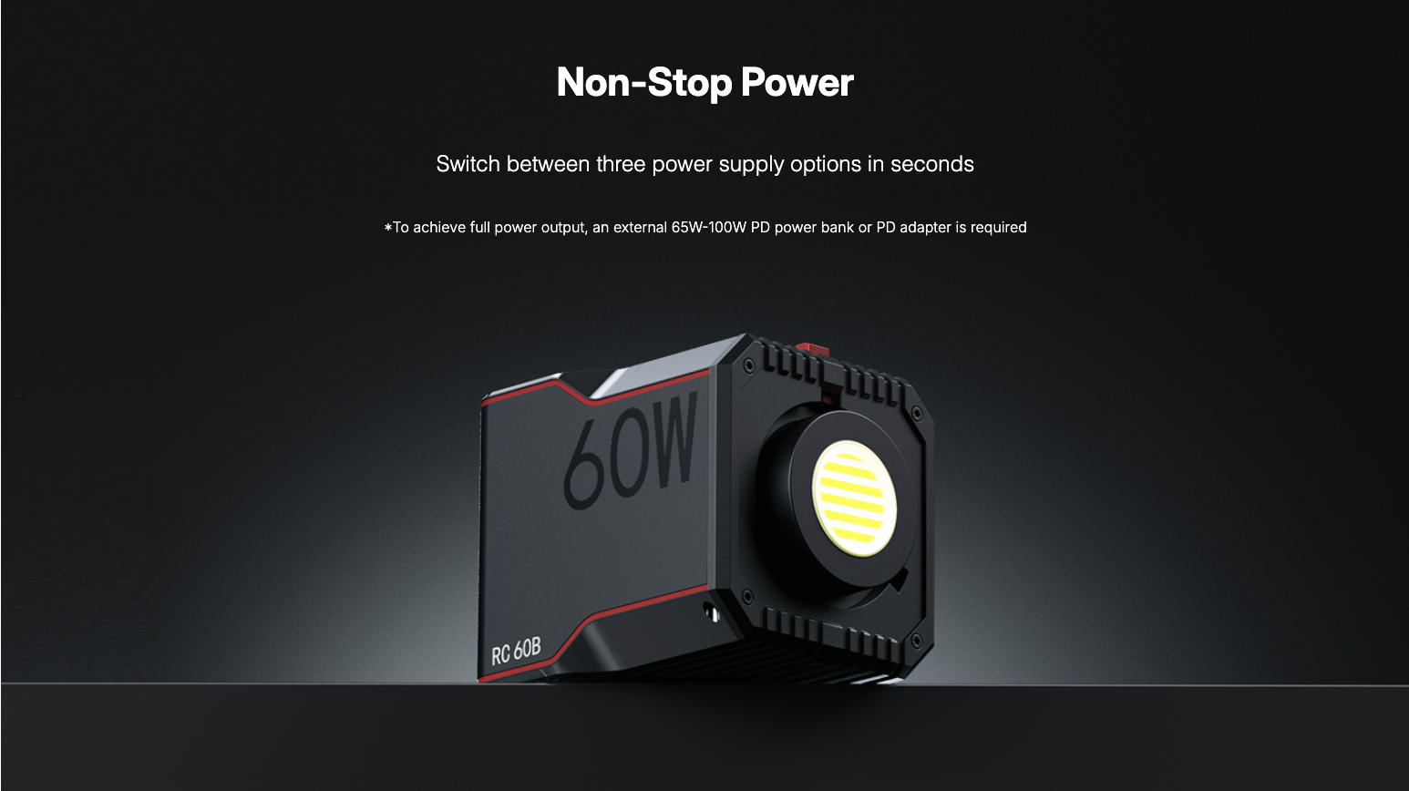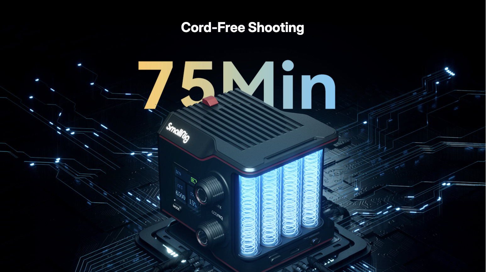 ・แบตเตอรี่ในตัว (Built-in Battery): ใช้งานได้นานสูงสุด 45 นาที ที่ความสว่าง 100% หรือ 75 นาที ในโหมดประหยัดพลังงาน (ECO Mode) ไม่ต้องต่อสายเกะกะ