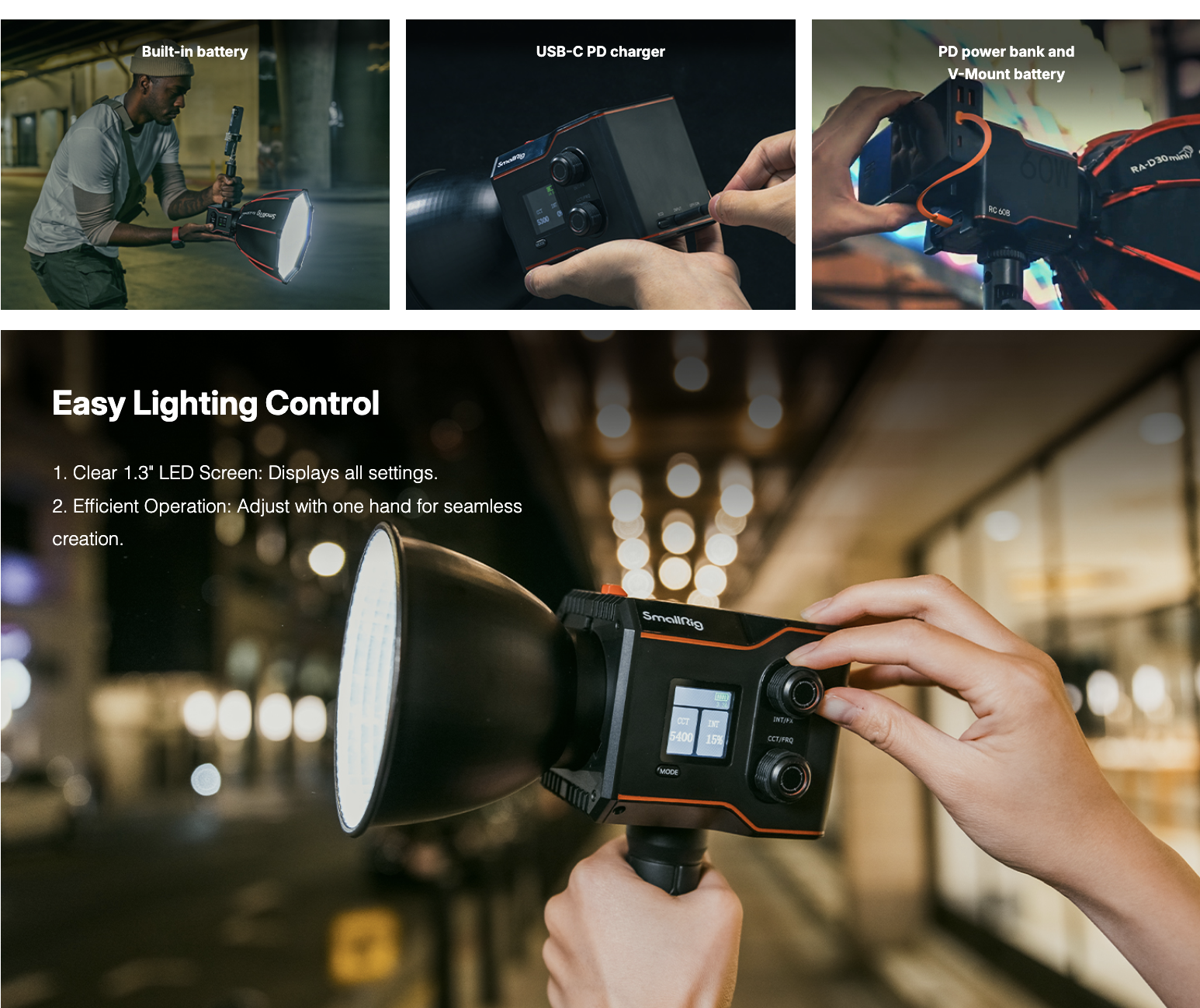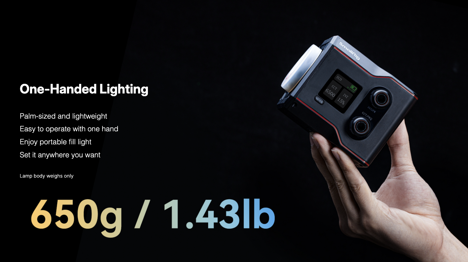 ・พกพาสะดวก: ตัวไฟมีน้ำหนักเพียง 650 กรัม (ไม่รวมอุปกรณ์เสริม) พร้อมดีไซน์ขนาดเล็กมาก มีหูหิ้วและกระเป๋าสำหรับพกพา