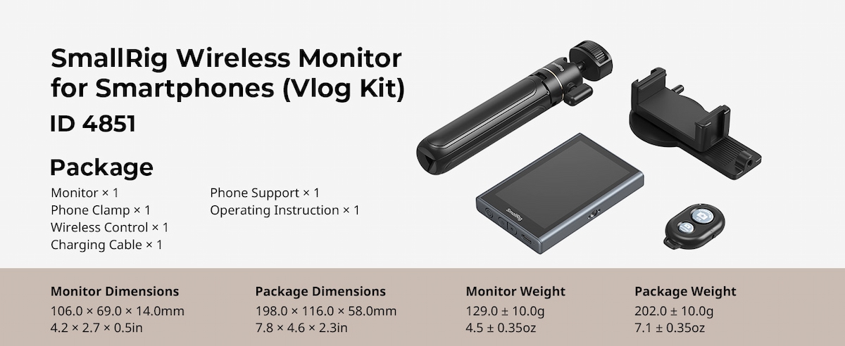 SmallRig 4851 Wireless Video Monitor for Phone (Vlog Kit) ประกันศูนย์ไทย