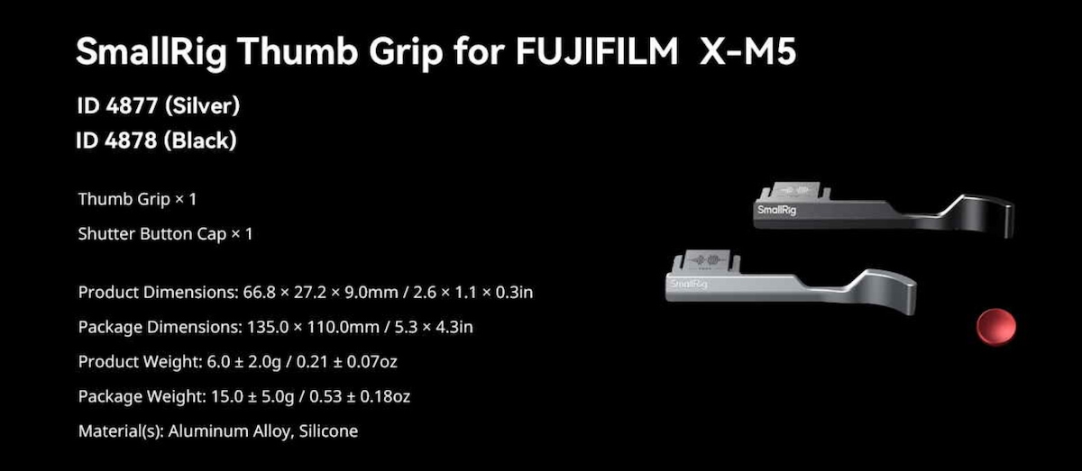 ・In the box : Thumb Grip SmallRig x 1, Shutter Button Cap x 1