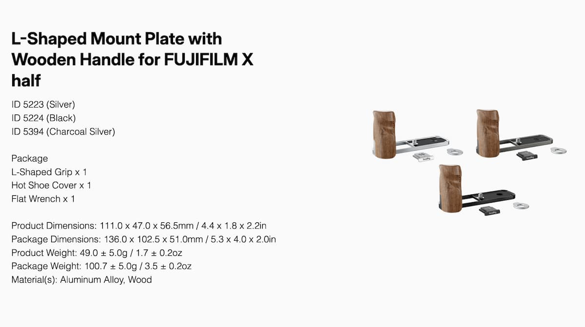 SmallRig 5223 L-Shaped Mount Plate with Wooden Handle for FUJIFILM X half - Silver ประกันศูนย์ไทย