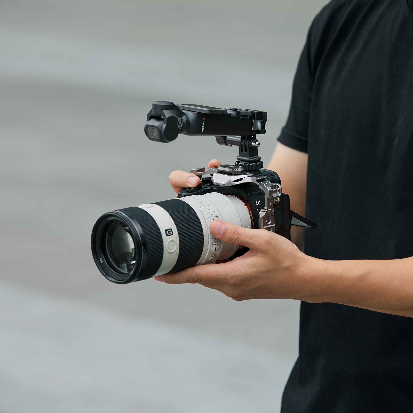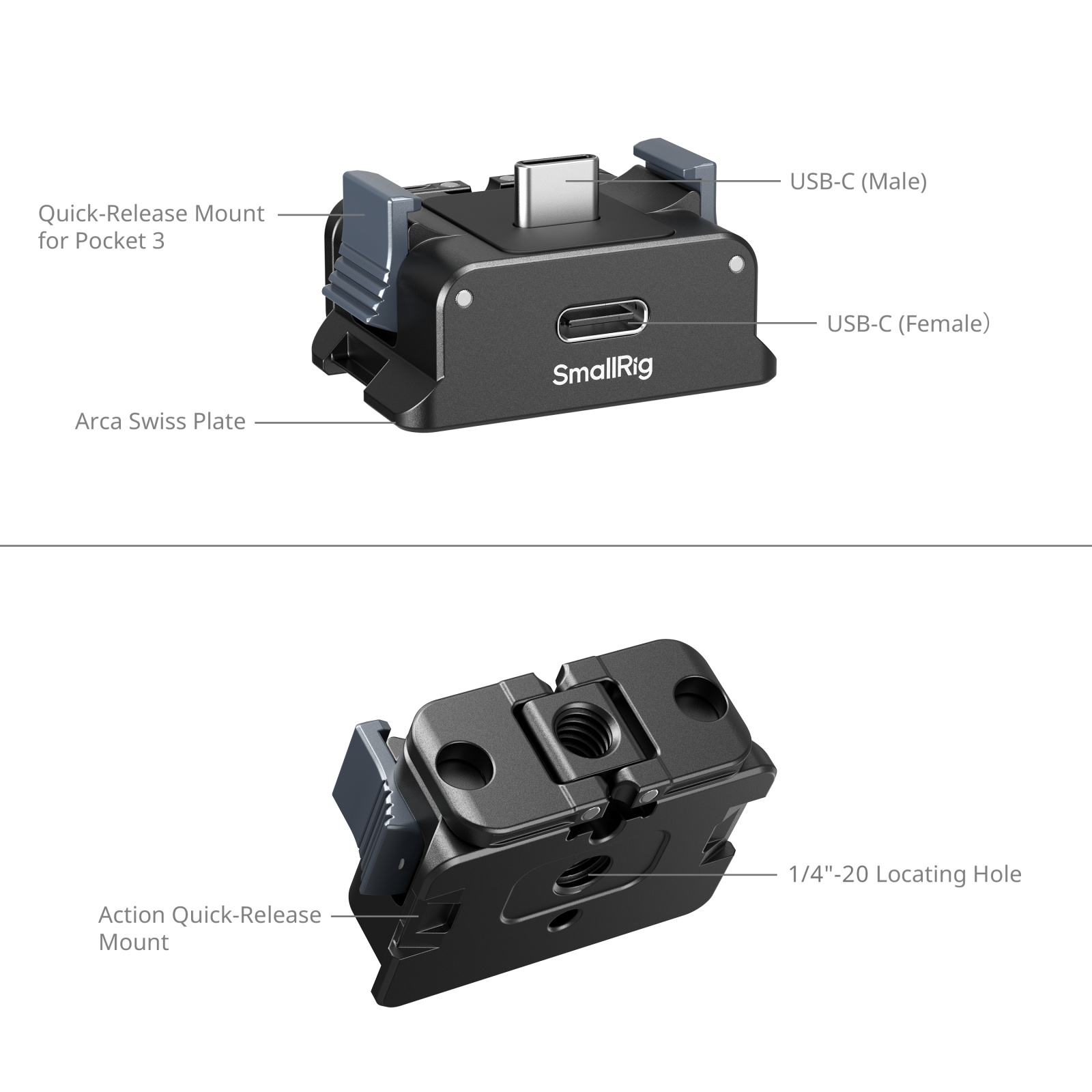 ・รองรับพอร์ต USB-C ของ Osmo Pocket 3 ช่วยให้สามารถชาร์จและถ่ายโอนข้อมูล ได้แม้ขณะติดตั้งเพลตอยู่