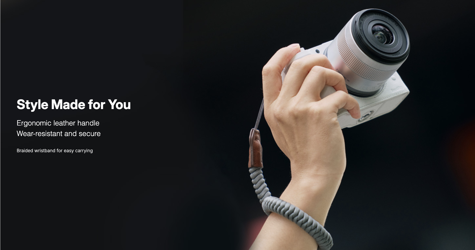 ・In the box : เคสหนังครึ่งตัวสำหรับ EOS R50 V, สายคล้องข้อมือ (woven wrist strap)