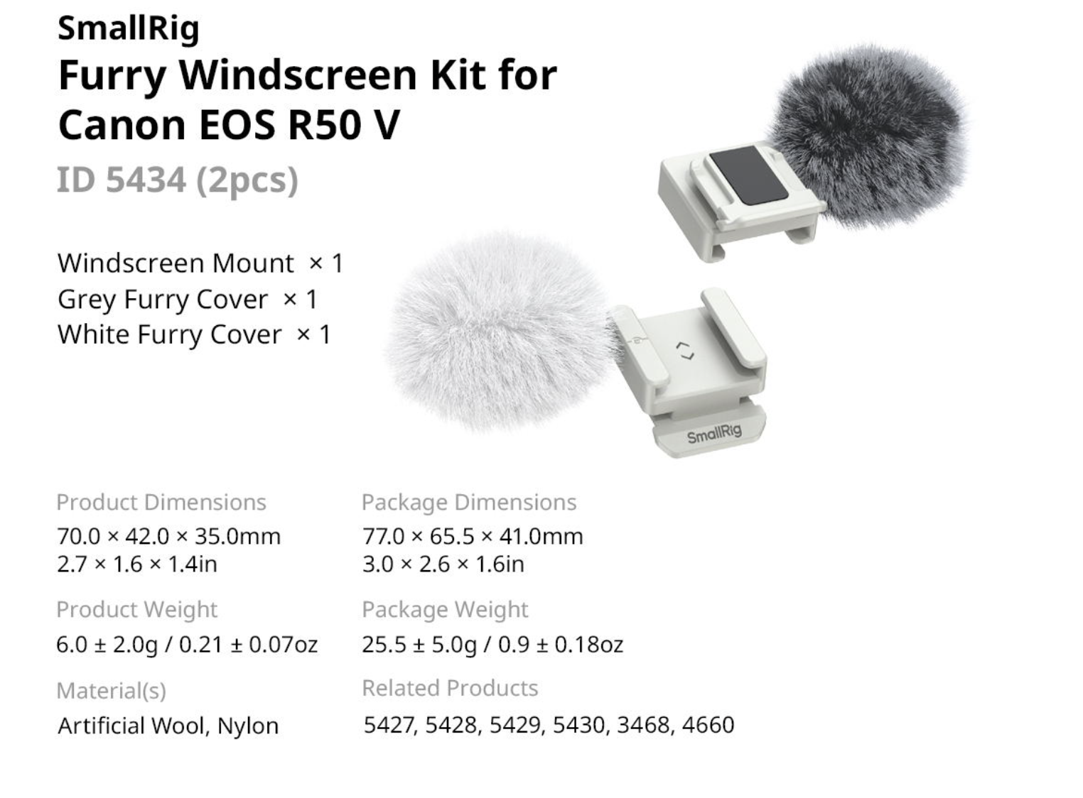 SmallRig 5434 Furry Windscreen Kit for Canon EOS R50 V (2pcs) ประกันศูนย์ไทย