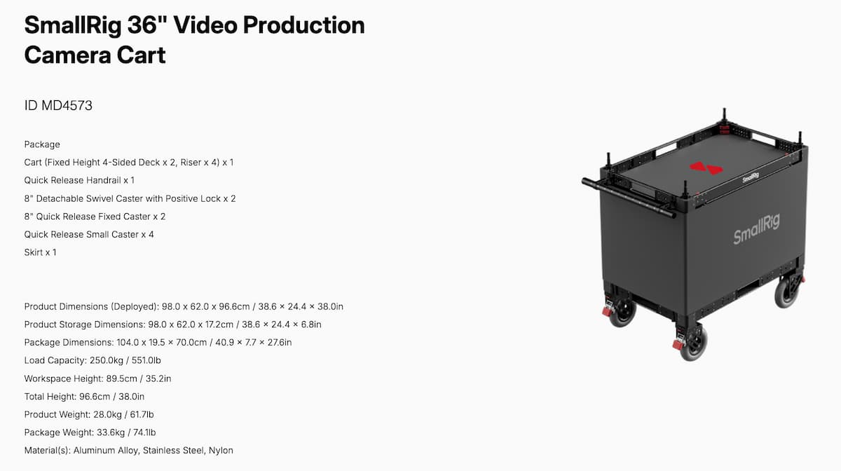 SmallRig MD4573 36" Lightweight Video Production Camera Cart ประกันศูนย์ไทย