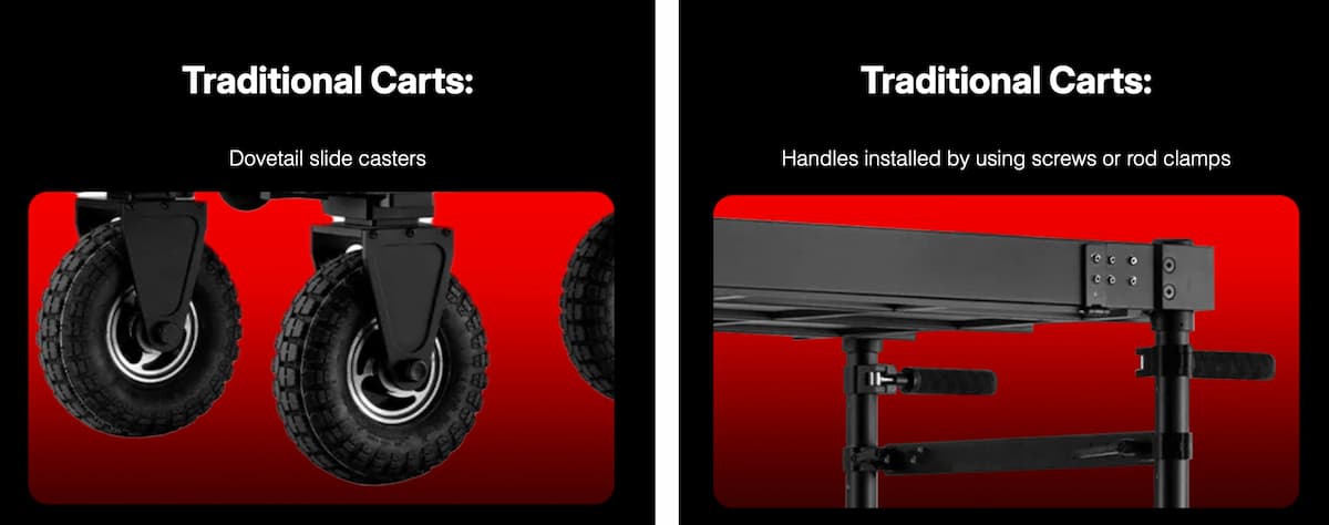 ・In the box : Cart (Fixed Height 4-Sided Deck x 2, Riser x 4) x 1, Quick Release Handrail x 1, 8" Detachable Swivel Caster with Positive Lock x 2, 8" Quick