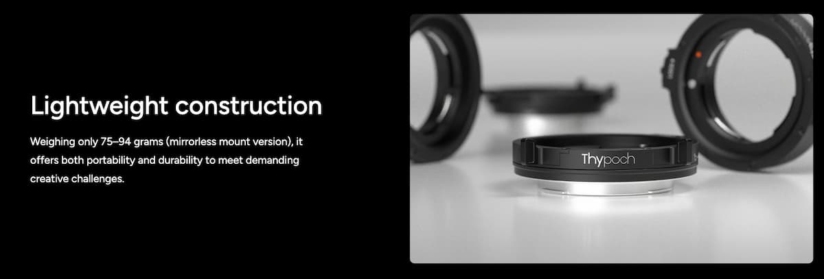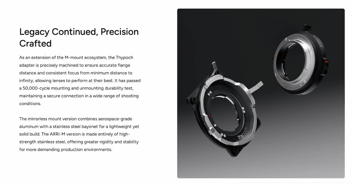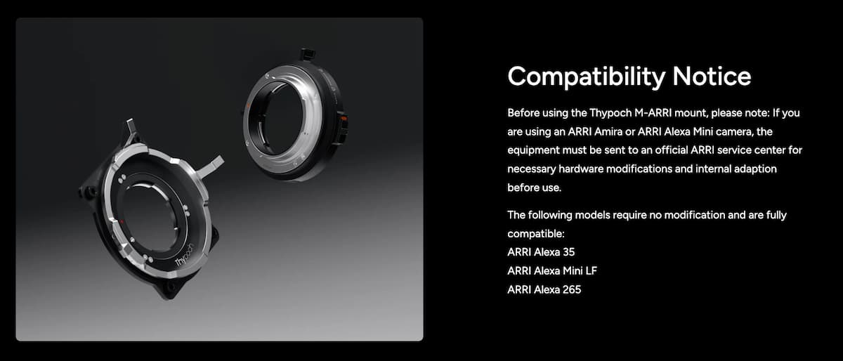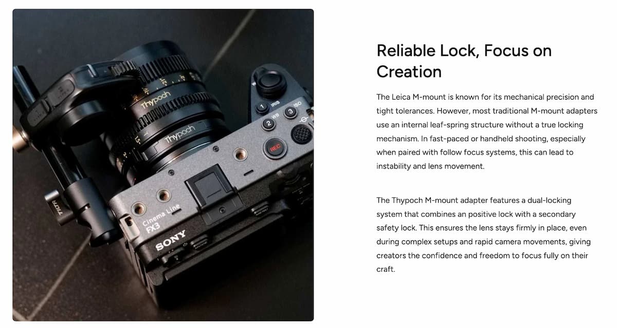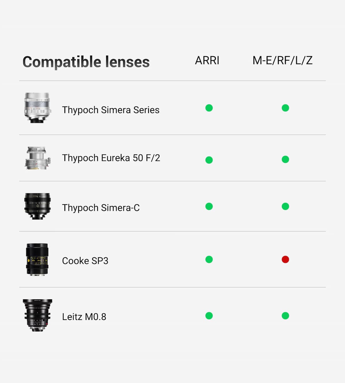 · รองรับเลนส์ทั้งซีรีส์ Thypoch (Simera, Eureka) และเลนส์ M-mount แบรนด์ดัง เช่น Cooke SP3, Leica M ฯลฯ
