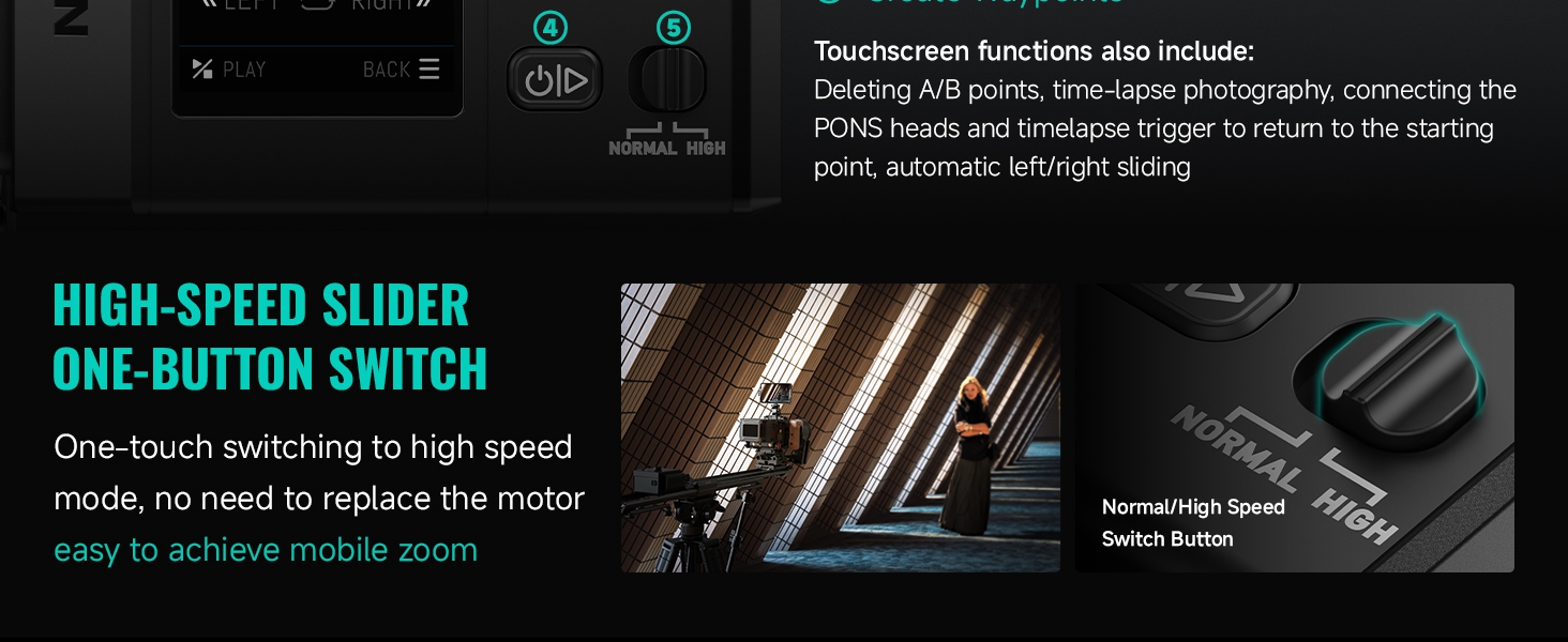 · ควบคุมการเคลื่อนไหวได้ด้วยมอเตอร์หรือแบบแมมนวลได้ ช่วยให้ช่างภาพวิดีโอมีอิสระในการสร้างสรรค์อย่างเต็มที่